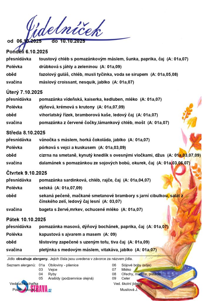 Na oběd v první školní den 1. 9. 2025 je nutné se přihlásit u vedoucí školní jídelny v týdnu od pondělí 25. srpna do pátku 29. Srpna 2025.