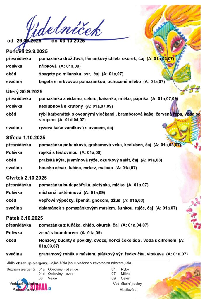 JÍDELNÍČEK 29.9.-3.10.2025
